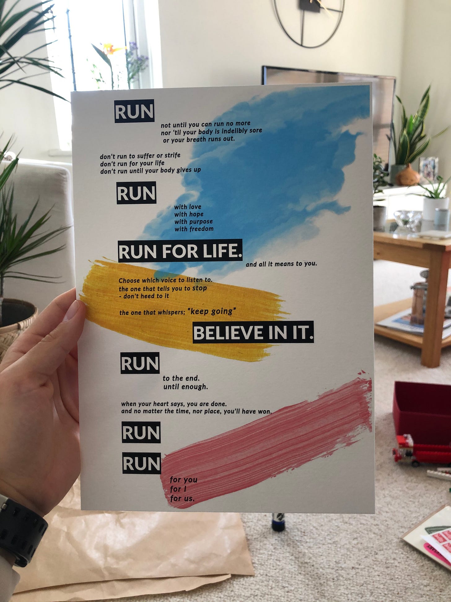 On the eve of the marathon I wrote him this Poem to capture what I’d seen him running for, or to and how his approach to the run, focusing on the journey, the process had inspired me too.